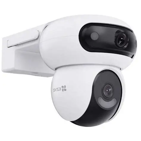 The EZVIZ H90 is a dual-lens WiFi security camera designed for home and business surveillance with wider coverage and enhanced detail.
